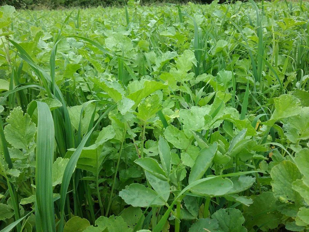 Cover crop mixture of Oil Radish, Oats and Beans, planted on the 23rd of April, photo taken 3rd of June.