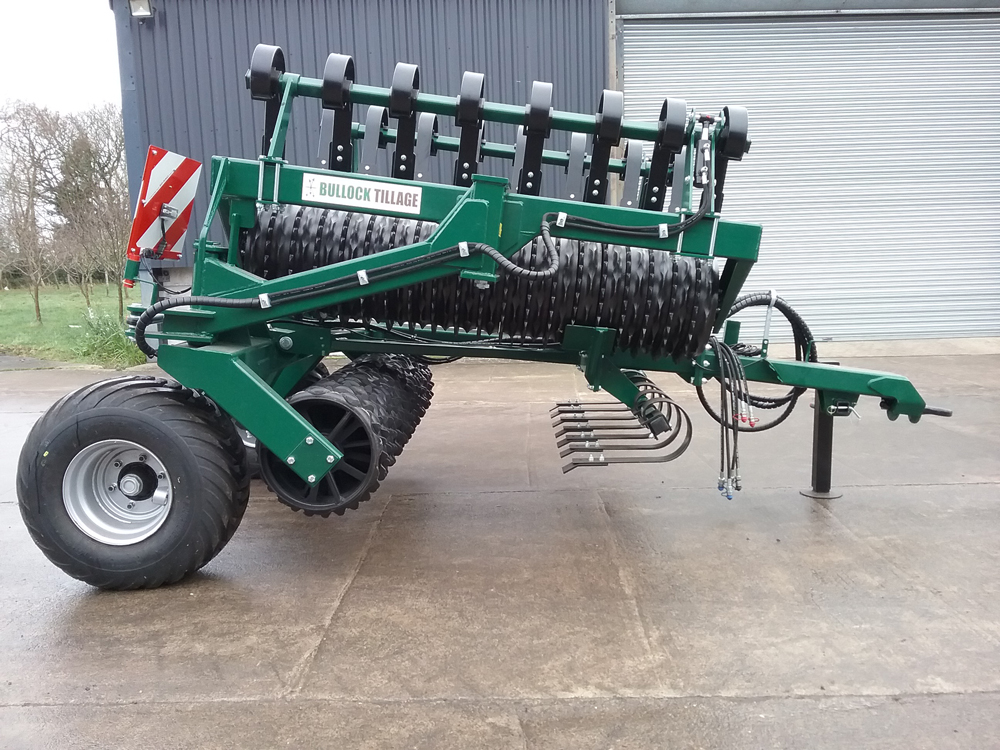 The Omega Plus range of hydraulic folding rolls from Bullock Tillage come in six working widths, 4.6, 5.3, 6.3, 9 and 12 metre. Roll diameter is 530 or 600mm in 4.6, 5.3 and 6.3 working widths, 9 and 12 metre working widths are available only in 530mm diameter.
