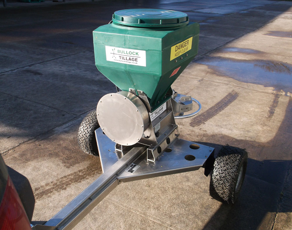 The 120 litre salt spreader from BULLOCK TILLAGE is a cost effective way of clearing ice and snow from car parks, farm and estate drives and yards, walkways etc